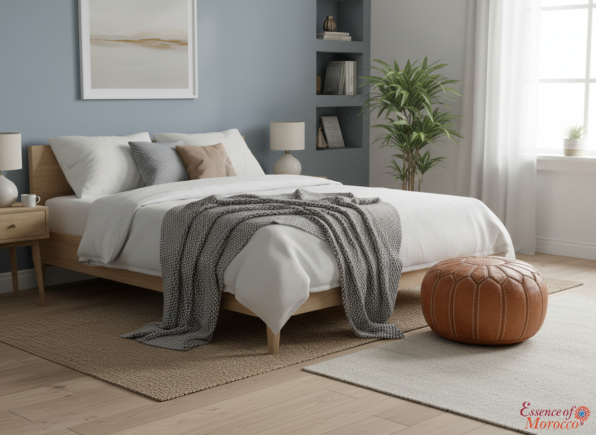 + Moroccan pouffe pouf footrest footstool ottoman cover, large, premium quality natural tan real leather.