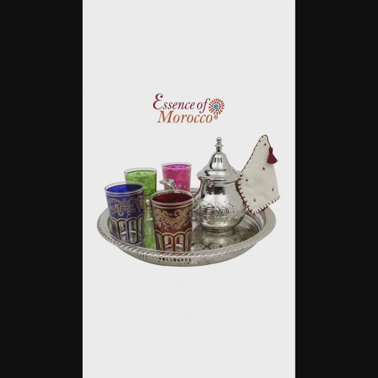 Moroccan Mint Tea Set Medium: Silver Tray, Teapot , 4 Multicoloured Tea Glasses (MTS)