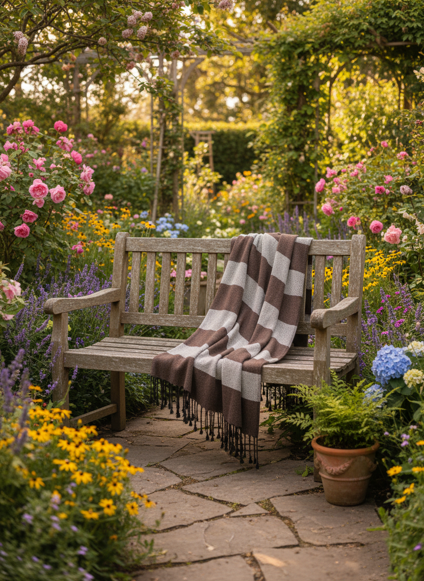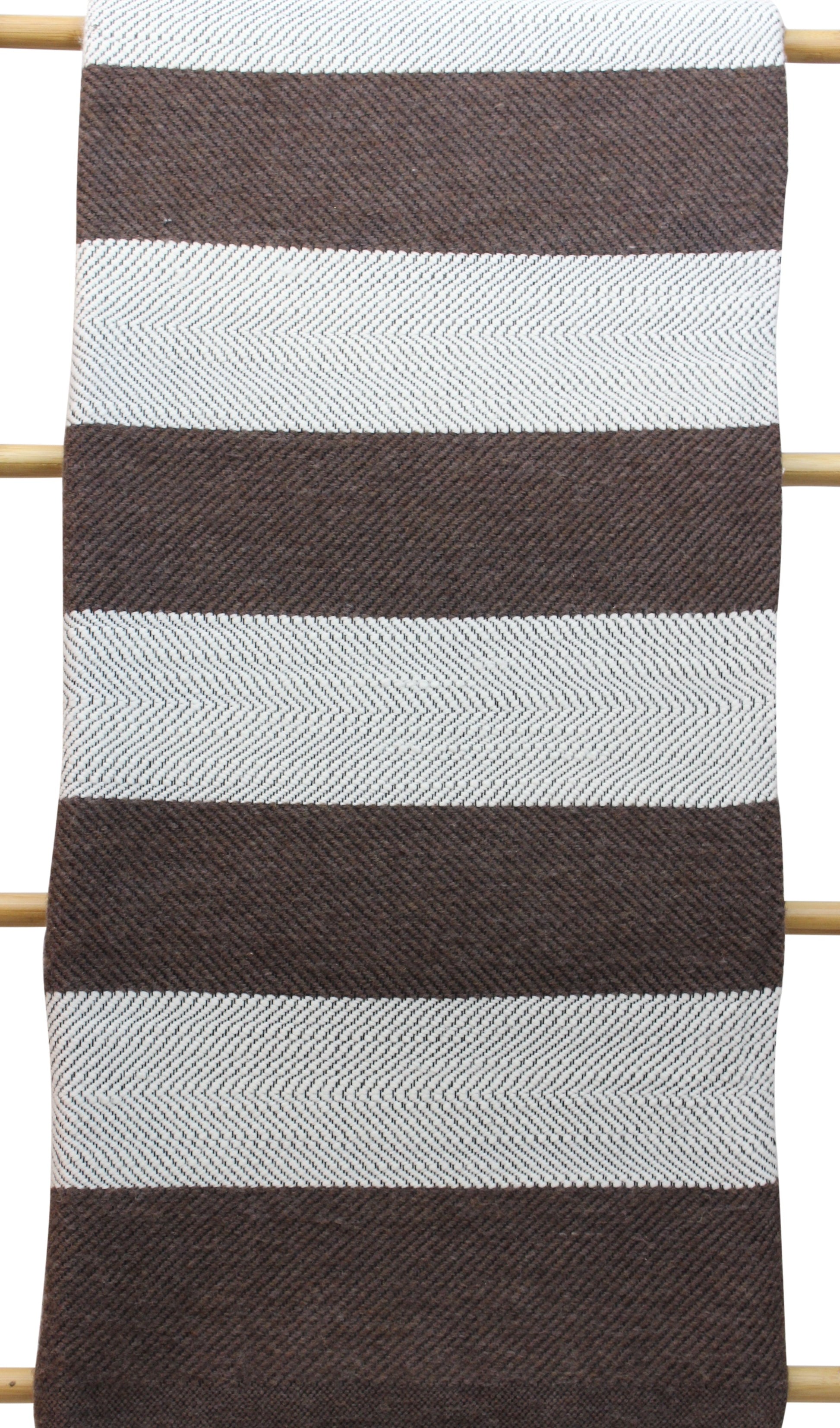 Moroccan Wool Blanket Throw Bed Runner Sofa Cover with Tassels Hand Loomed Stripy Taupe and White 263 x 152 cm / 103.5 x 60.2 inches