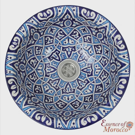Moroccan ceramic washbasin sink wash basin, in a gorgeous traditional blue design, handmade hand painted by artisans in the city of fez.