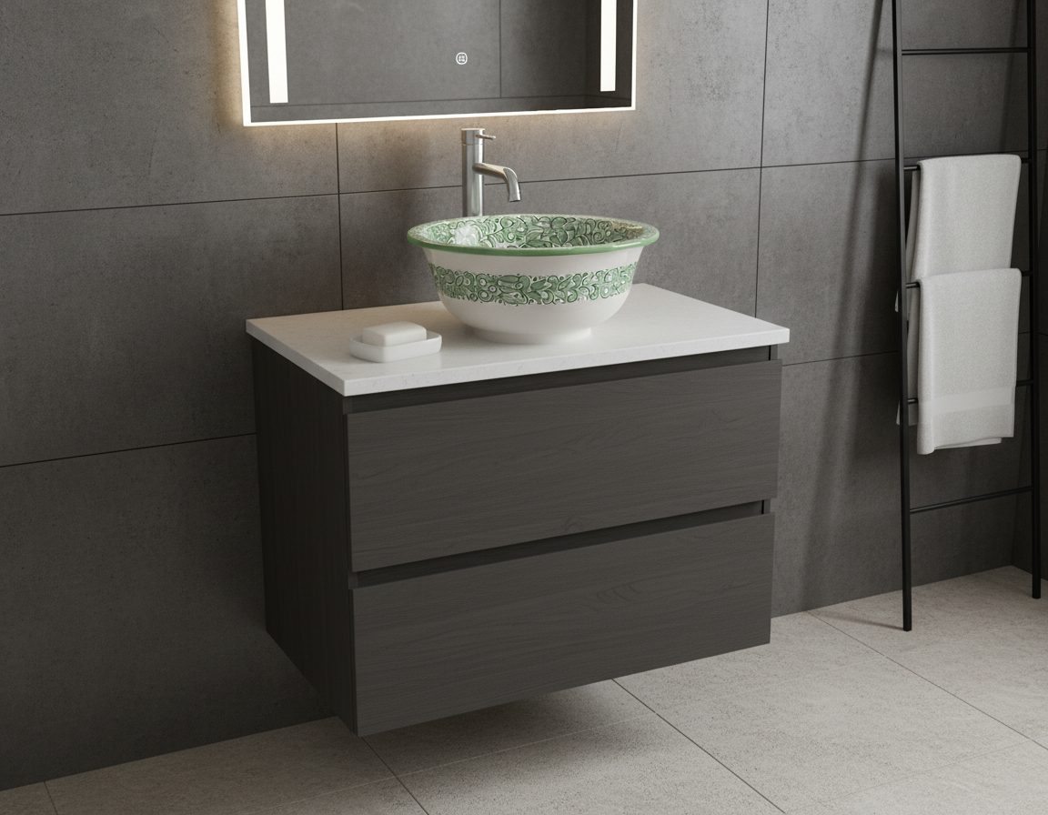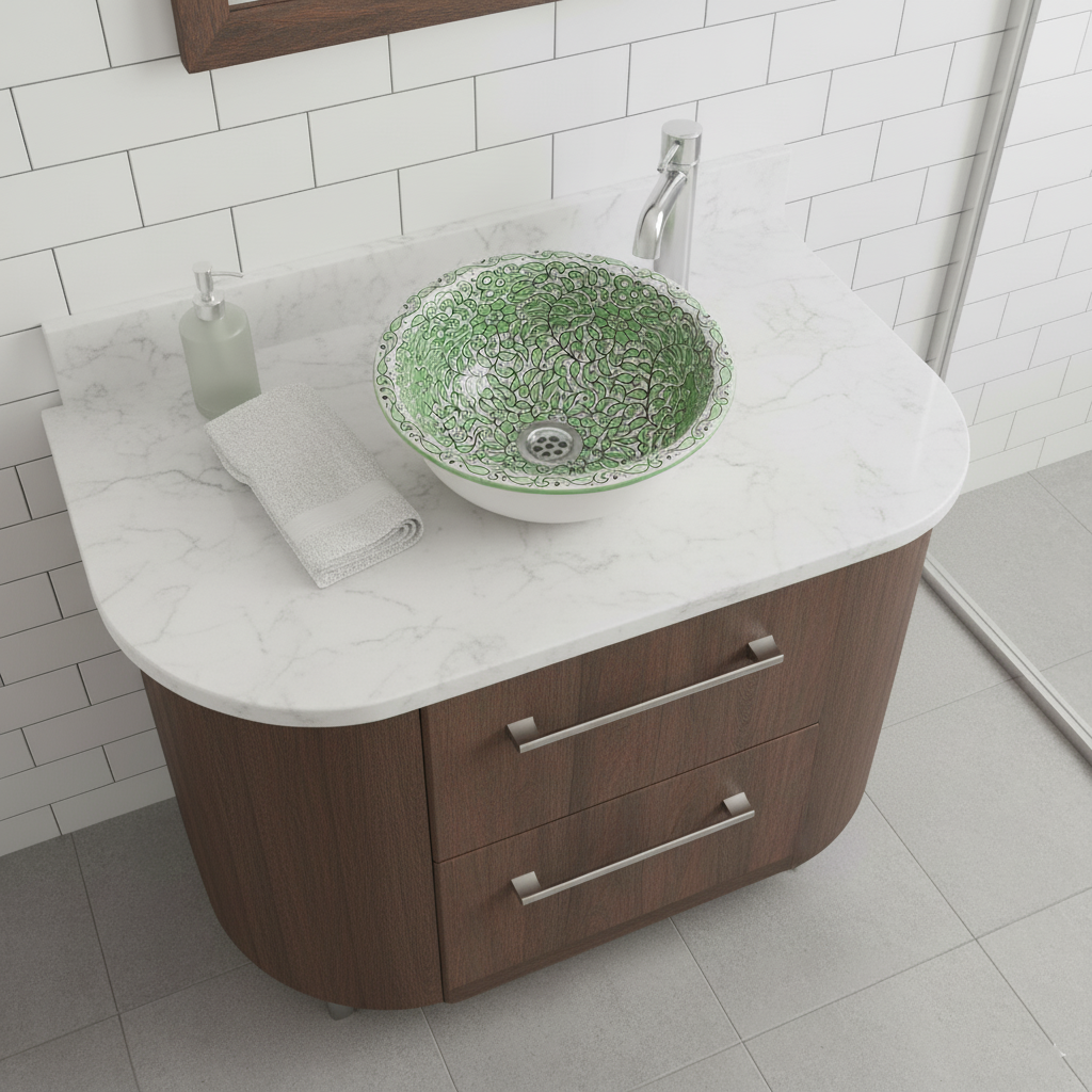 Moroccan Sink Washbasin Wash Basin Ceramic Handmade Green Free Waste (SW103)