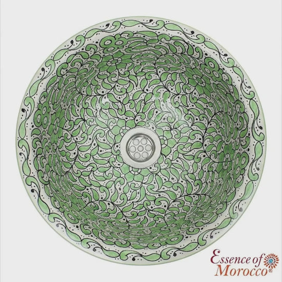 Moroccan ceramic washbasin sink wash basin, in a gorgeous traditional green design, handmade hand painted by artisans in the city of fez.