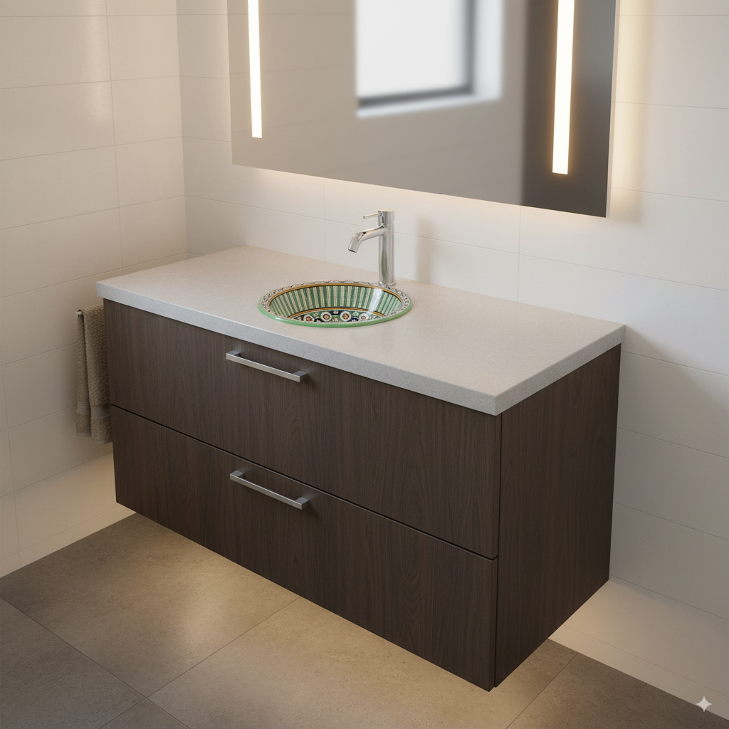 Moroccan Sink Washbasin Wash Basin Ceramic Handmade Green Free Waste (SW53)