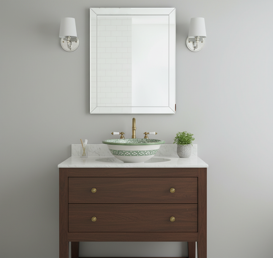 Moroccan Sink Washbasin Wash Basin Ceramic Handmade Green Free Waste (SW55)