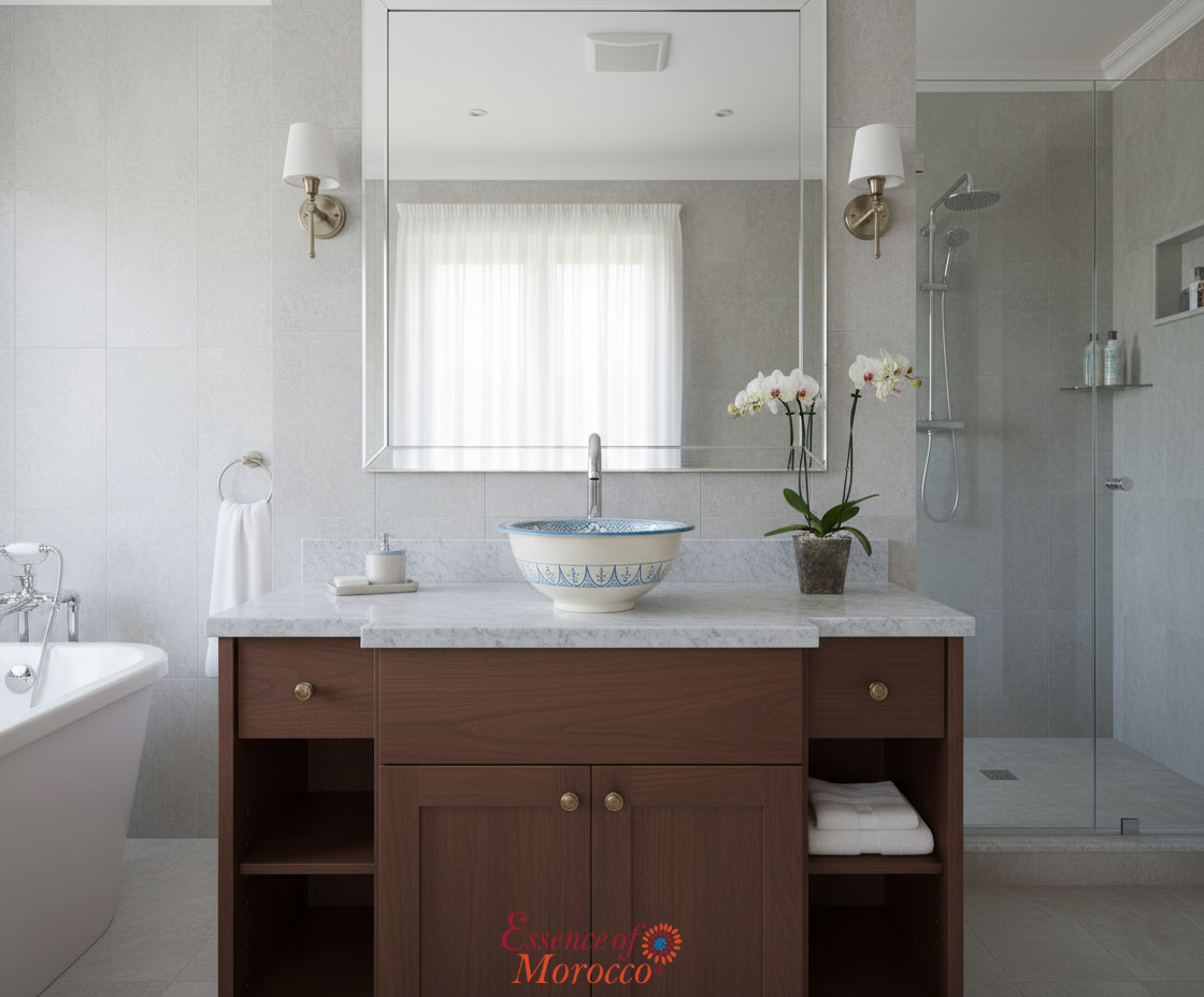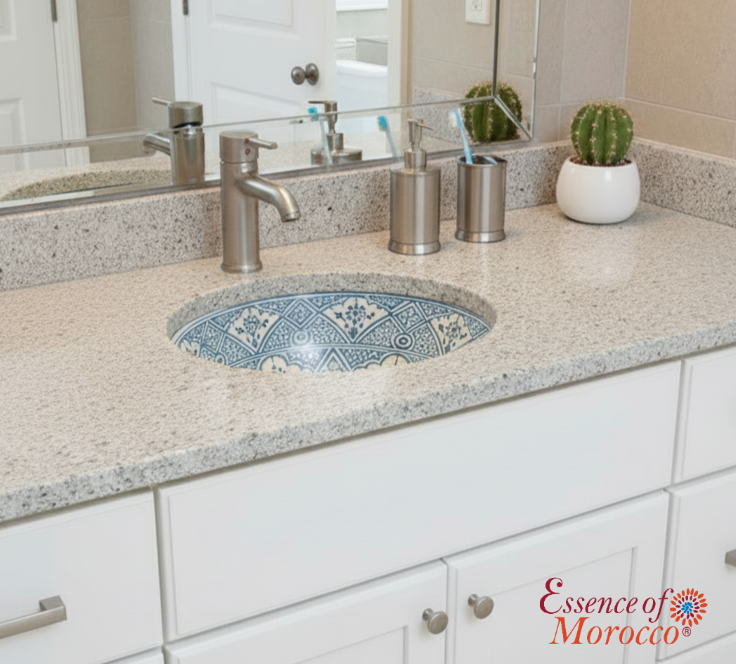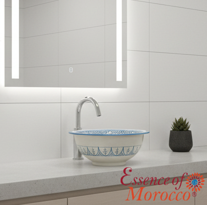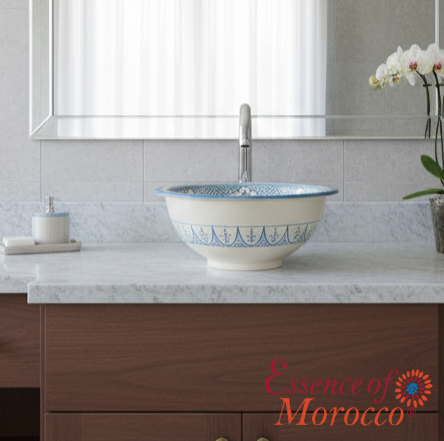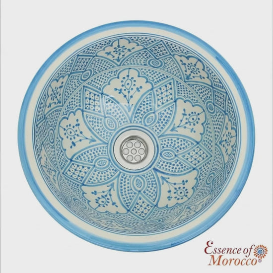 Moroccan ceramic washbasin sink wash basin, in a gorgeous traditional Turquoise blue design, handmade hand painted by artisans in the city of fez.