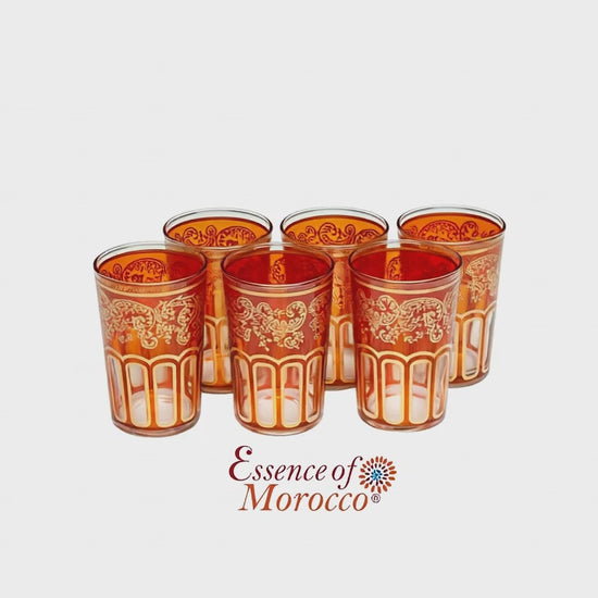 - Moroccan Tea Glasses in Orange and Gold, beautifully designed in Morocco.