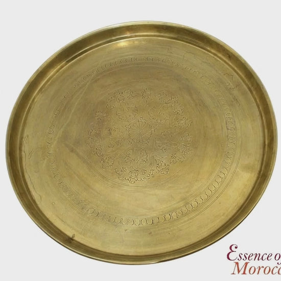 A rare Moroccan vintage brass tray handmade and hand engraved in the 1960's by a skilled master craftsman in the old imperial city of Fez Morocco.